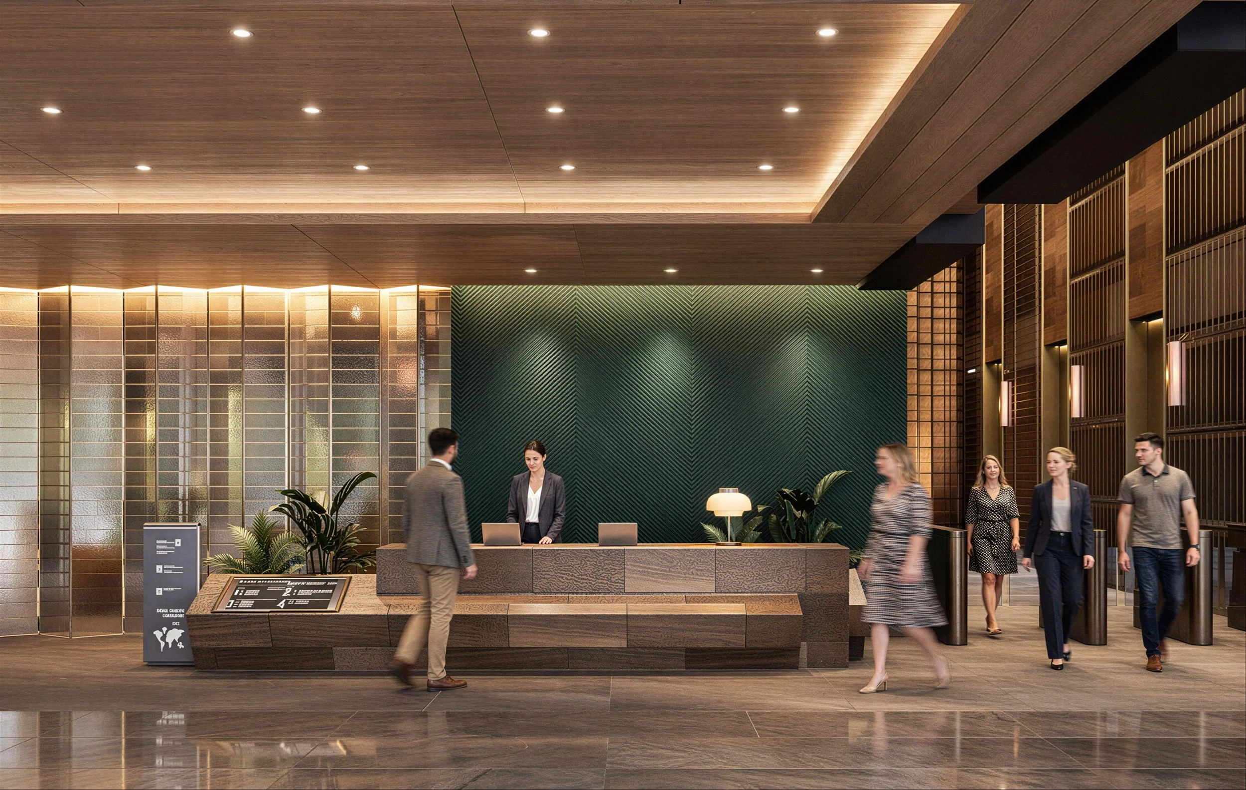 Led the in-house architecture, interior, and graphics design team to deliver a biotech innovation hub. The workplace adopts a “Precision with Humanity” brand direction — blending scientific intelligence with warm, human-centric design. Using a refined neutral palette with deep teal and warm copper accents, combined with natural timber, stone, and subtle biophilic elements, the space reflects both rigorous innovation and approachable elegance. The overall identity communicates “Where Science Meets Opportunity”, creating an intelligent, premium environment tailored for biotech researchers and angel fund teams.